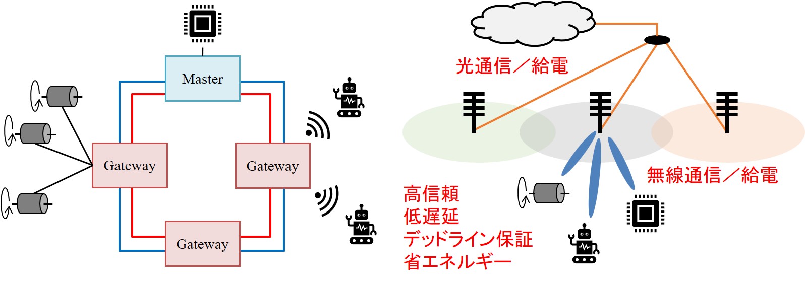 IoT(Internet of Things)端末を利用した計測制御アプリケーションでは、高信頼かつ低遅延の有線・無線ネットワークが必要とされています。ロボット制御ネットワークや車載ネットワークへの活用が期待されており、バッテリ駆動を考慮した省エネルギーな計測制御技術の研究開発も重要となっています。